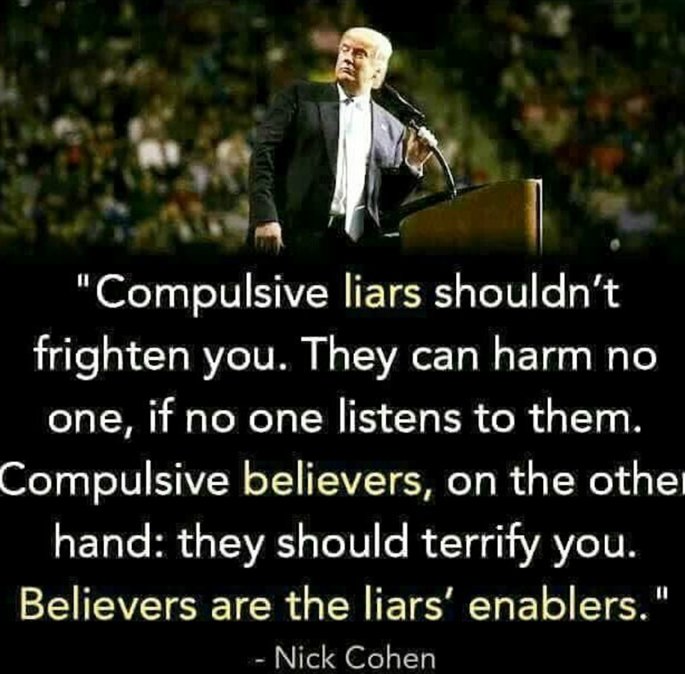 "Believers are the liar's enablers" -- very true.