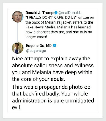 Was TODAY really the best day for her to come out with her line of 'I HATE THE MEDIA' coats? That is incredibly callous and cruel and just stupid. That is the best you got? A ratty old message on a ratty old coat that even a homeless person would turn down. This is fashion for a first lady who is not known for saying or doing or SAYING anything controversial or even interesting while her husband runs rampant like a crazy toddler at a wedding reception? So if she was really trolling trump with this coat in an attempt to make him look worse then it's new ground for her. This is where my Melania conspiracy theory falls apart. Is she dumb enough to be convinced by someone in her inner circle that this would be seen as a reference to the fake news and NOT indifference to imprisoned children on color? Yes, that I would believe. I hope people are fucking with them all from the inner circle. That will make el commandante insane and he will reveal more of his evil inner baby on Twitter and TV.