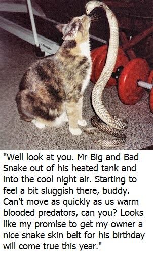 I forever stand vigilant to protect this planet from the myriad of forces that are always against us. Be it the octopus, zombies, aliens or the robots my team of human agents, and our feline allies, circle the globe in a never ending struggle for human freedom.