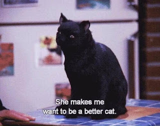 "being captioned as we speak" LOL! Also love the little girl, her cat and the phone.
