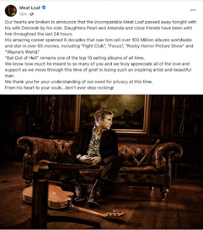 If you were a teenager at the end of the 70s you owned this album. It was huge and iconic and defined a time when Rock music could be about something like a tune from a Broadway musical. And no one loved the theatrical more than Meatloaf. He was a huge guy and definitely NOT video pretty. He was better seen performing live and even shunned videos for years until even those he made became iconic. He was unique and a great actor who always brought something special to any small role he found himself in. He was a true performer who sold it to the cheap seats in the back every time. I for one am sad to see him go.